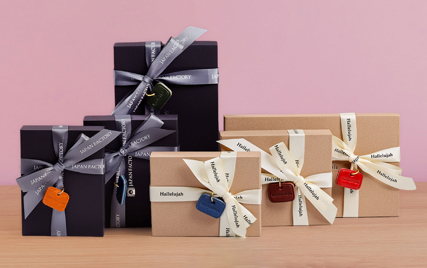 - 各ブランド(Hallelujah / JAPAN FACTORY)に合わせた箱の色でお届けします。